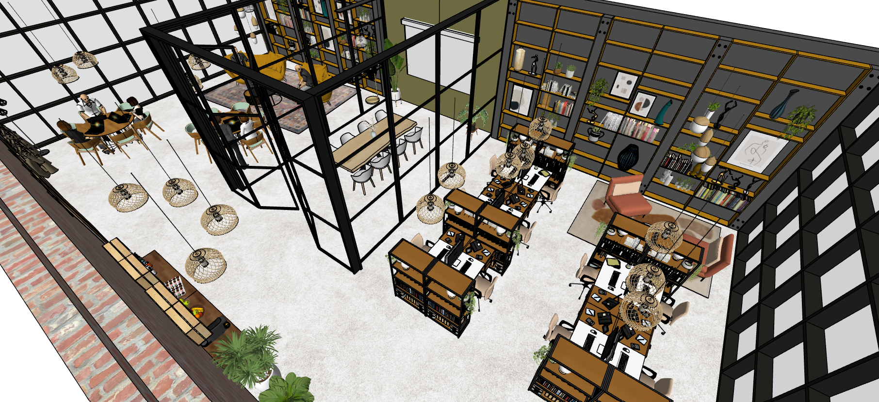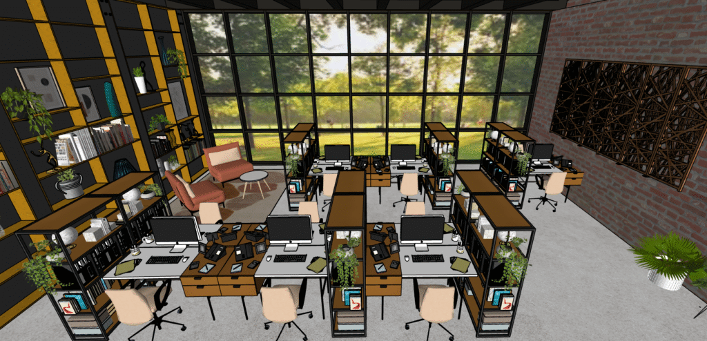 J’ai privilégié une esthétique industrielle-chic, enrichie par des touches de biophilie, favorisant ainsi la concentration et la collaboration.